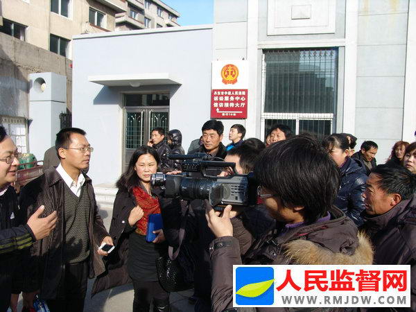 图:二审庭审重要证人当庭翻供,李英全、冷国权家属庭外接收记者采访