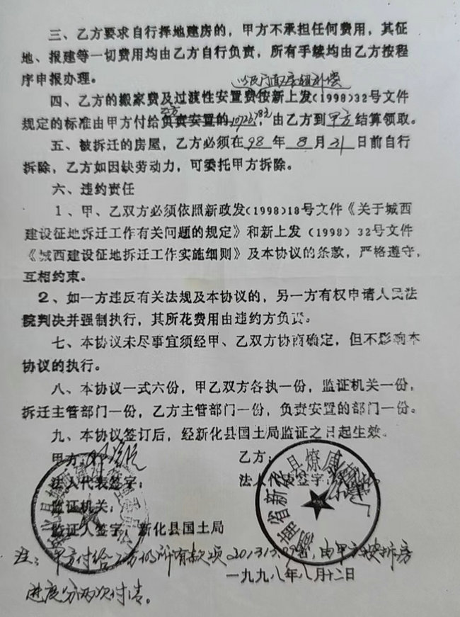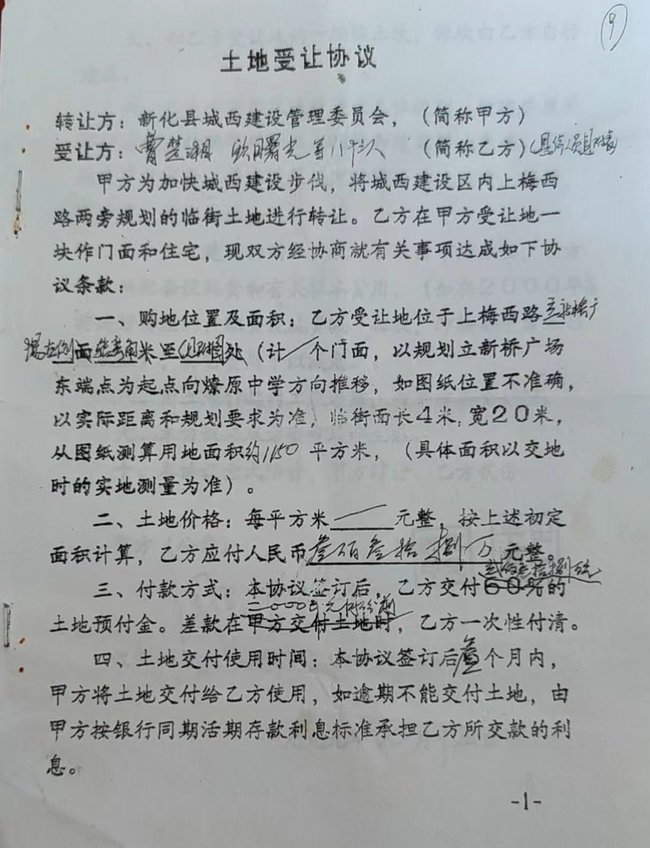 卖掉土地协议上有时任上梅镇副镇长,城西建设开发区主任周晋的亲笔签名,上亿资产的企业就这样被毁灭,卖机械设备的钱,拆除房屋材料的钱,卖地皮的钱都被原上梅镇抢占侵呑。