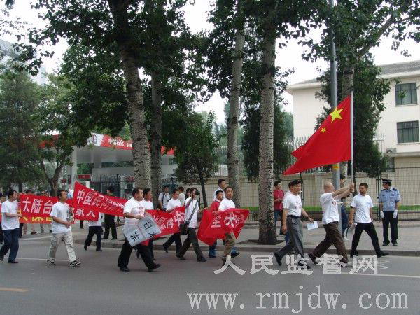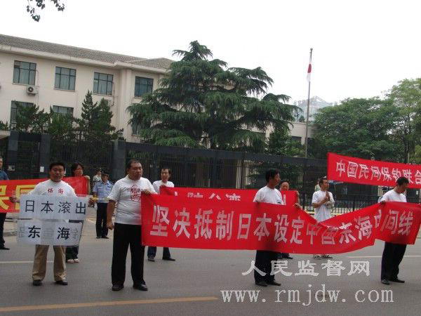 人民监督网讯 (记者 朱瑞峰)2008年6月18日下午,中国15名公民在日本使馆前和平示威,抗议日本舰艇撞沉中国台湾渔船。整个过程持续了半个小时。