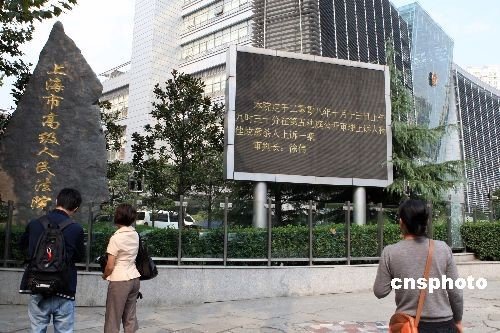 10月13日上午9点30分,上海杨佳袭警案在上海市高级人民法院开庭。图为上海高院的电子屏幕刊登该案开庭信息。 中新社发 潘索菲 摄
