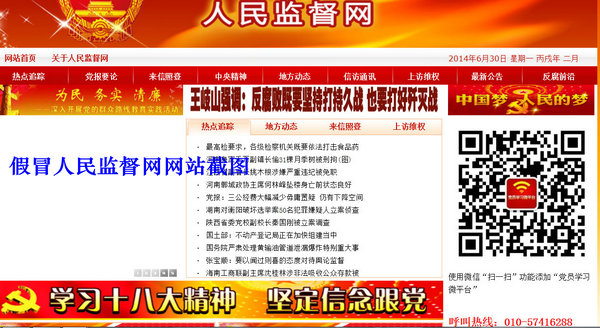 【网友撞见李鬼】网友爆料称:发现了一假冒人民监督网的网站www.renminjianduwang.com 网友拨打此网电话010-57416288(虚拟电话),一位山西口音的男子用手机接听的,网友问:是人民监督网吗?对方支支吾吾,网友又问:朱瑞峰记者在吗?对方急忙挂断电话。