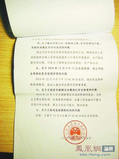 一案牵一案,一命再一命,死亡的方式离奇,真相不明,身份迥异,此案的诡异真是匪夷所思。先说张立科,其举报的是公安局长谢志冈,可选择死亡的地点却是法院,而且是自己开车驶入辽宁省本溪市南芬区人民法院院内自Fen,把对这个世界的怨恨都一个人背着走了。而谢志冈,一个堂堂的公安局长,却命丧检察院。谢志冈妻子王丽见到了被冷冻的谢志冈的尸体,“尸体表面伤痕累累,手腕脚踝都有深度勒痕,右侧肋骨还断了5根。”