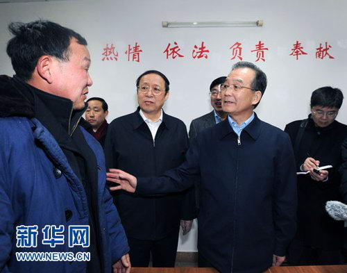 1月24日,中共中央政治局常委、国务院总理温家宝前往国家信访局,与来访群众进行面对面交流,了解他们的困难和要求,并就政府工作听取意见。这是在信访局接待大厅,温家宝总理向来访群众了解他们的诉求情况。
