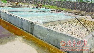 在浸泡布条的大水池旁有一条大沟,里面的水呈红色,也有刺鼻味道。与这个加工点一墙之隔就是两个蔬菜大棚,大棚业主们反映说,这个加工点在这儿落脚有半年多时间,经常把红色的水排到大棚边上的河沟里,种在河沟边的树有的莫名其妙地死掉。
