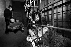 浙江兰溪市梅江镇宋宅村,因无钱医治,“武疯子”宋红文被家人关在铁笼中9年。资料图片/陶玉其 摄