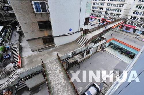 记者发现,确如网帖描述一样天桥上有保安值勤。在桥下的半小时时间内,记者见到保安4次经过天桥。当记者在交通厅办公楼从上往下观察天桥时发现,这座天桥一端直接进入交通厅生活区大院,一端则连接另一生活区,并有一连廊从天桥通向交通厅办公大楼二楼。