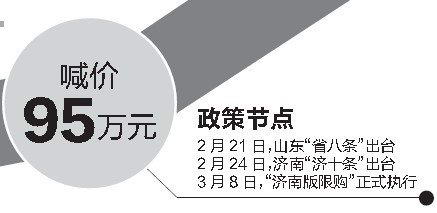 2月24日,济南又出台了楼市调控“济十条”,济南市将调整个人转让住房营业税政策,对个人购买住房不足5年转手交易的,统一按其销售收入全额征税。坚决堵塞“阴阳合同”产生的税收漏洞,严格执行个人转让房地产所得税征收政策。对贷款购买第二套住房的家庭,首付款比例不低于60%,贷款利率不低于基准利率的1.1倍。