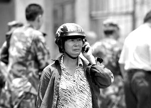 3日,广西来宾合山煤业公司八矿樟村井井口附近,一位妇女在等候亲人的消息。