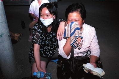 被疏散出的村民遮挡住口鼻。