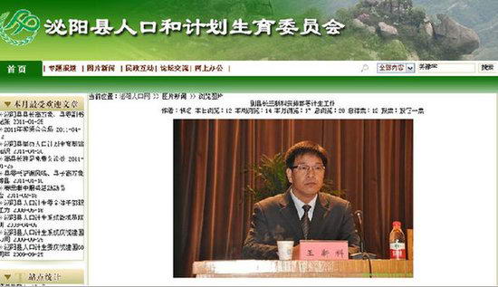 2011年4月20日,泌阳县政府网站报道称“副县长王新科”参加了县人口和计划生育工作奖惩大会,并在主席台就座。