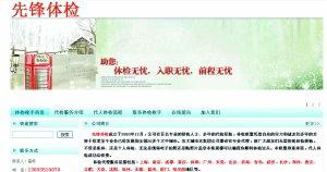 “在北京我们做得最专业,保证你体检过关,费用是过关后付款。”一名自称“先锋体检”网站北京站工作人员,名为翟希的男子说。