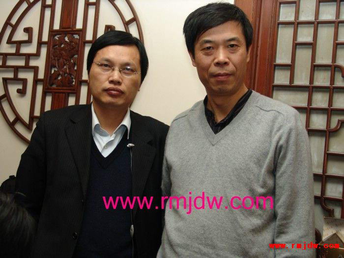 本图:举报人陈涛安与中国青年政治学院教授展江合影 摄影/朱瑞峰