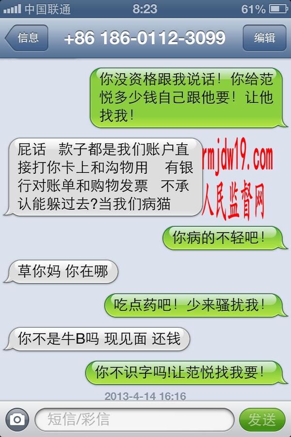 · 曝光得好啊。奸商听了官员的话,把钱打到第三者帐户,向第三者要钱,好像很有理。殊不知,这会被真正的商人笑话,因为商人重视市场规则。因为他们根本不是真正的商人,他们是官员的狗奴才。