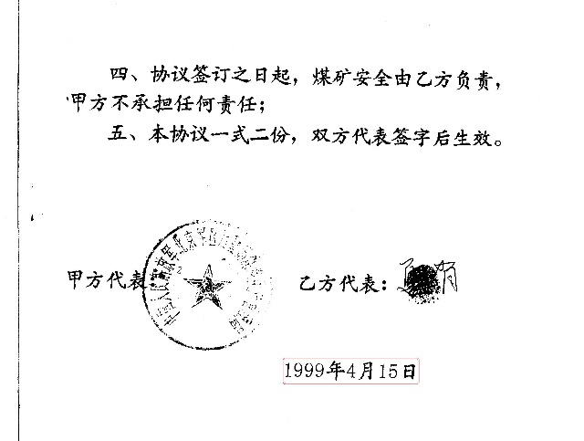 军办高山煤矿与夏占友签定的转让协议