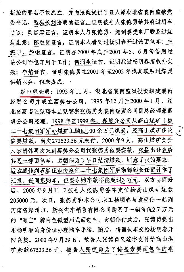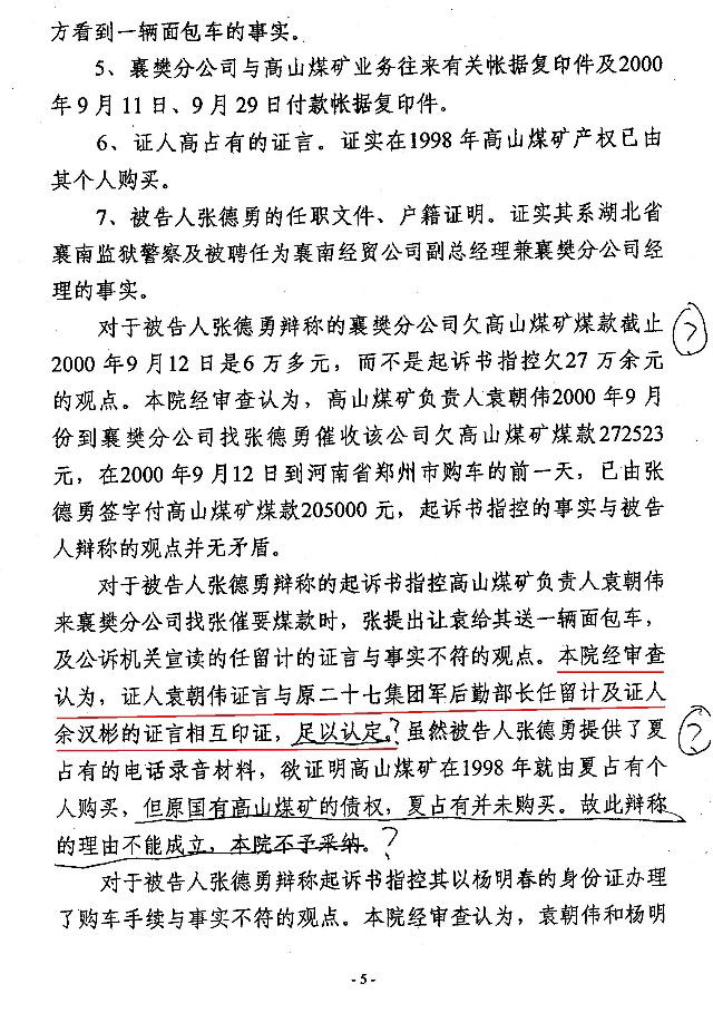 张德勇所收集的襄樊分公司帐页,郏县物资局物资贸易公司的增值税发票,都取于卷中的指控证据,这些证据都证明了27万余元的债权不是高山煤矿的,这也是显而易见的事实,为什么起诉书和判决书上却非要错误的、强行的认定该27万余元债权是军办高山煤矿的?答案只有一个,无非是想印证在军办高山煤矿转让后,袁朝伟将和军队没有任何关系的行贿之事向任留计汇报,任留计批准行贿这样的虚假证言。无非是想借此虚假、不实的证言认定张德勇受贿成立。
