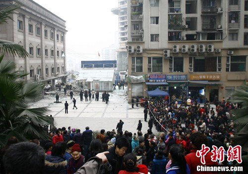 22日,重庆大渡口区法院食堂发生爆炸事故。图为事故现场。